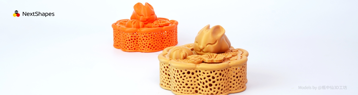 Want to 3D print a hollow mooncake lamp with jade rabbit patterns, but the filament just won’t cooperate—leaving cracked patterns and blurry details? NextShapes Standard PLA filament is here to fix all your “printing troubles”! With it, you can print this Mid-Autumn Festival–themed lamp that captures the rabbit’s pure elegance and the mooncake’s delicate textures, while staying cute and durable