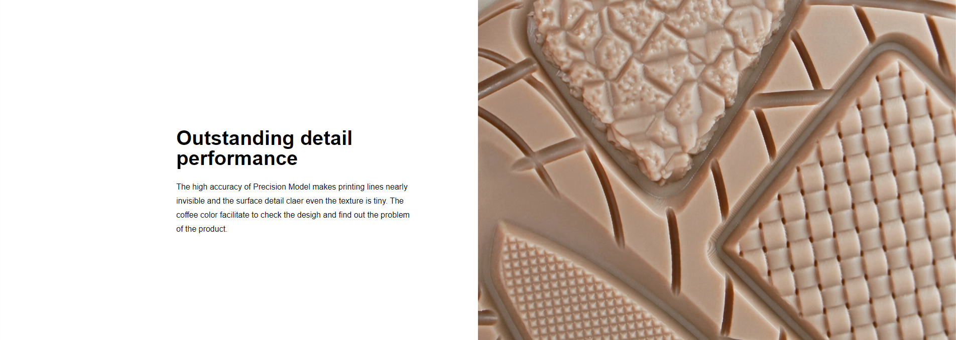 Precision Model offers a new approach to meeting such requirements through advanced 3D printing. Test data show that this 3D resin can effectively reproduce fine features on shoe molds. Practical observations indicate that it can render delicate surface textures, including complex leather grains and mesh structures, when utilized in SLA 3D printing technology. This capability provides more possibilities for developing shoe molds with intricate surface effects.